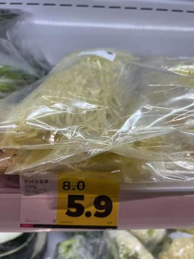 就在此时,旁边另一位阿姨凑了过来:“这个便宜的,上次我在奥乐齐韭黄250克八块多,它这个五块多肯定便宜的。”